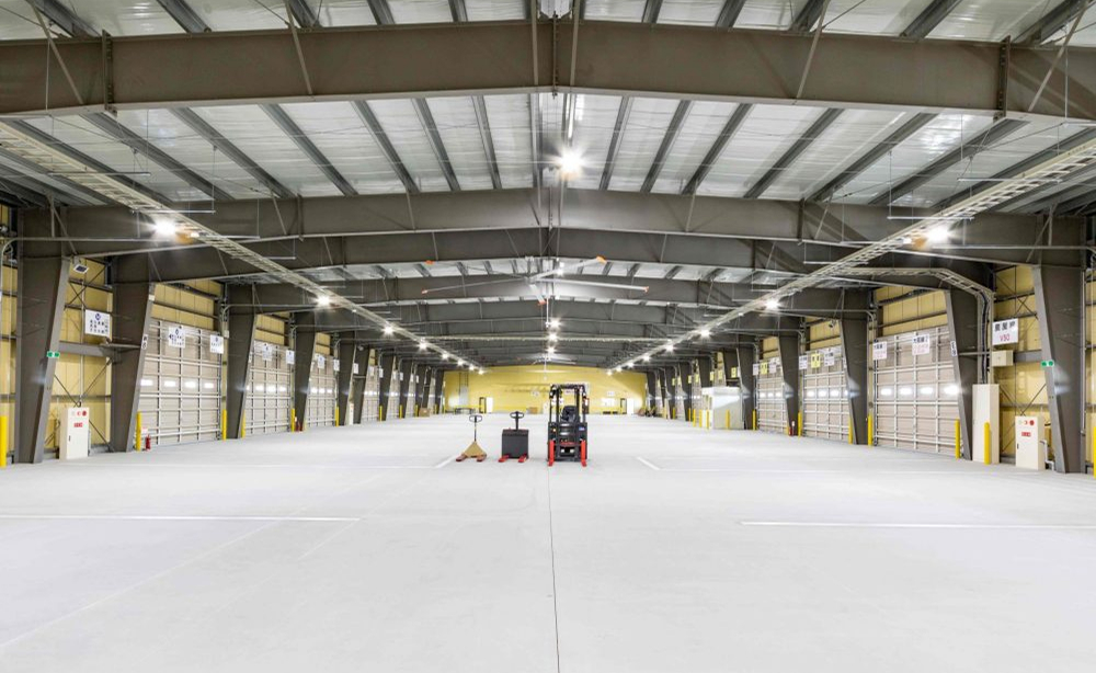 敷地面積18,495.88㎡、1期工事・2期工事合わせての総建築面積が17,512.64㎡と大規模な工事でありましたので、「システム建築」を採用し、大空間の物流倉庫を短工期・高品質にて完成させることができました。