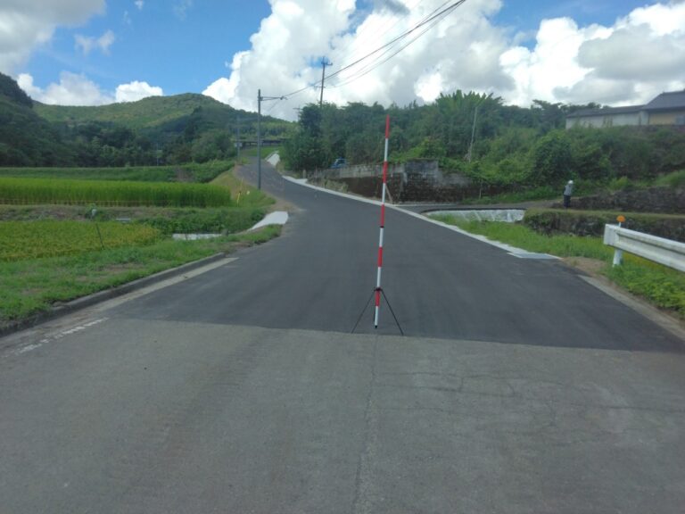 伊佐市 菱刈南浦において幅員が狭く大型車両などの通行が難しいと地元住民から要望のあった道路の拡幅工事を行いました。主な内容は路体盛土・排水構造物・舗装でした。当初の計画では現況との取合いに不具合が見られたため線形を一部変更して大型車もスムーズな通行ができるようになりました。さらに現場の近くには牛舎もあり一般車両の通行の妨げにならないよう注意しながら作業を進め無事故・無災害で工事を完成することができました。