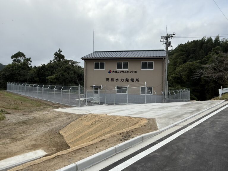 当工事は、高低差60mの公道に直径80cmの配水管を1400m埋設し高松用水路から勢いよく流れてくる水を利用して水車を回し発電する、環境にやさしい水力発電所の工事でした。